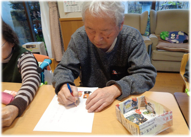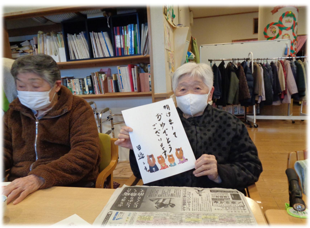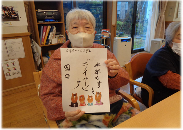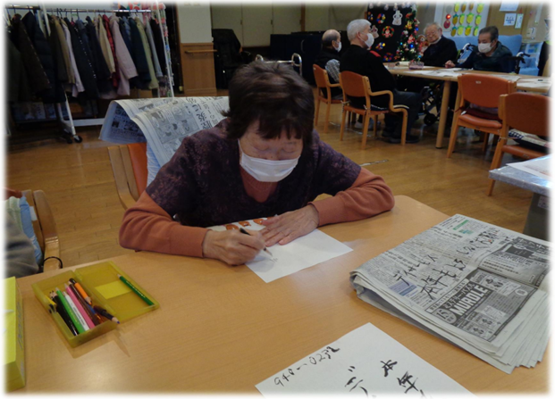 最近の出来事2025/12/17てまり総合ケアセンター【てまりデイサービスセンター】レクリエーションの時間に来年の年賀状作りを行いました。大きく印刷した年賀状には、新しい一年への期待や抱負を、皆さまそれぞれが思い思いに書き込まれました。文字よりも絵で表現をすることがお好きな方は、イラストを描かれるなど、皆さま楽しみながら取り組まれていました。完成した作品は、フロアに展示する予定です。新年に向けた前向きな気持ちが込められた明るい作品が勢ぞろいです。