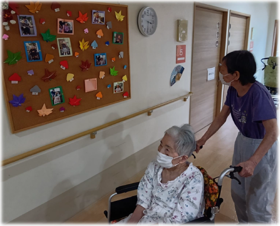 最近の出来事2025/09/25てまり総合ケアセンター【てまりショートステイ】ご利用者の自由な行動と安心できる生活支援のため、施設内や敷地内外の散歩をされています。